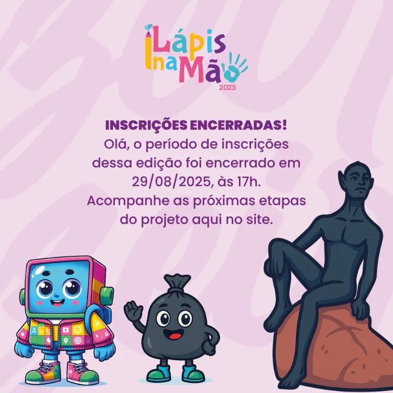 Se você é aluno da rede de ensino e quer mostrar seu talento em uma das categorias do Lápis na Mão, é só procurar seu professor ou a coordenação da escola e confirmar seu interesse entre os dias 1º e 29 de agosto de 2025.